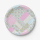 Eine schicke Papierplatte mit einem hübschen, nostalgischen Imitat-Patchwork-Muster von rosa Dogroses auf himmelblauen Hintergrund mit passenden Polka-Punkten, Streifen und Putz. Als Teil der Posh & Painterly 'Rosy Posy' Kollektion kann dieses Muster leicht an jede Papierplatte angepasst werden.