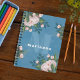 Ein einfaches Design mit einem einfachen, minimalistischen Monogramm-Namen, einem mit Monogramm Anfangsbuchstaben, floralrosa Vintagen Rose botanisch, einem stilvollen trendigen typografischen Schriftart, einem schlichten, eleganten, minimalistischen Blätter, mit Aquarellgrün-Garten-Blätter, Zuhause-Büroarbeitstitel, mit individuellem personalisierten Namen, entweder mit Uni reguliert, oder Graphen Papier, ideal für Kompositionsklasse-Notizbuch
