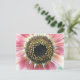 Diese hübsche Postkarte zeigt ein detailliertes nah-up Foto einer hübsch rosa Sonnenblume. Das Foto wurde mit Makrofotografie gemacht und zeigt die lebhaften rosa Blütenblätter und die faszinierenden Details dieser wunderschönen Blume.