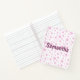 Dieses Notebook ist atemberaubend und mit einem hübschen rosa Sternenhimmel versehen. Ihr Name wird in der Mitte mit lustigem lila Schriftart geschrieben. Gut für die Rückkehr in die Schule, bestellen Sie noch heute Ihre! Kunst erstellt von: AMBillustrations http://www.etsy.com/shop/AMBillustrations/