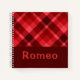 Ein 8,5" x 8,5" mit Monogramm Spiralnotebook mit einem schönen diagonalen karierten Musterdesign in rubinrot. Erstellen Sie das perfekte Geschenk, indem Sie auf den "personalisierten" Button klicken, um einen Namen oder eine benutzerdefinierte Nachricht in das angegebene Vorlagenfeld hinzuzufügen. Wählen Sie den Link "Bearbeiten mit dem Entwurfswerkzeug", um Schriftart, Textgröße und vieles mehr zu ändern.