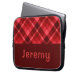 Ein mit Monogramm Laptop-Ärmel mit einem schönen diagonalen karierten Muster in rubinrot. Erstellen Sie das passende Geschenk, indem Sie auf die Schaltfläche "personalisiert" klicken, um einen Namen oder eine benutzerdefinierte Nachricht im vorgegebenen Vorlagenfeld hinzuzufügen. Wählen Sie den Link "Bearbeiten mit dem Entwurfstool", um den Schriftart, die Textgröße und vieles mehr zu ändern.