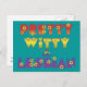 Sind Sie hübsch und witzig und lesbisch? Zeige deinen Stolz mit dieser skurrilen Postkarte! Der Text lautet: "Hübsch witzig & lesbisch". Die Schrift hat eine Farbmischung aus der Regenbogenflagge. Sie können die Hintergrundfarbe ändern, wenn Sie möchten. Woll dieses oder ein ähnliches Design auf einem anderen Artikel? Durchsuchen Sie meinen Errant-Shop.