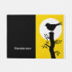 Schöne Tür in Gelb und Schwarz, mit einem Vogel auf einer Silhouette vor dem Mond. Zen und asiatisches Flair. Personalisieren Sie Ihre Daten mit Ihrem/Empfängernamen. Fügen Sie Ihrer Wohngestaltung eine ruhige Schönheit hinzu und heißen Sie willkommen!