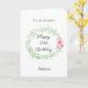 Ein Aquarelllaurel und rosa Blume hübsch Happy 21. Geburtstagstochter-Karte, die Sie leicht personalisieren können die Vorderseite mit ihrem Namen. Die innere Nachricht dieser hübschen Geburtstagskarte liest eine herzliche Nachricht, die Sie auch personalisieren können, wenn Sie gewollt haben. Der Rücken hat den gleichen Aquarelllaurel mit rosa Blume und einem Platz für das Jahr. Das würde ihr einen süßen personalisierten Sake machen.