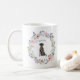 Diese hübsche Tasse aus schwarzem Labor besticht durch einen trendigen Blumenkranz mit hübschen Blume und Blätter in Rosa, Pfirsich, staubblauen, lila und grünen Farben. Eine Aquarell-Abbildung eines niedlichen schwarzen Labrador Retriever Hundes sitzt drinnen, mit einem Platz, um entweder Ihren eigenen Namen oder den Ihres Haustieres hinzuzufügen! Das perfekte Geschenk für die stolze Hundemutter.