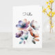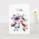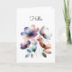 Ein Aquarellbild hübscher Blume in aquamarin, pfirsichfarben, lila, blau. Dieser botanische Ausdruck ist perfekt für einen einfachen Hallo-Gruß, aber Sie können den Text zu Ihrem bevorzugten Gruß ändern. AI unterstützte Grafik, die mit kommerziellem Einsatz erworben wurde. Kunstwerk: DreamCafeArt