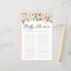 Fügen Sie Ihrem Event dieses lustige und festlich anpassbare Baby-Dusche-Spiel hinzu. Es verfügt über eine blumengeschmückte Aquarellgarage mit rosa und weißen Rosen, Dahlien und Pionieren mit grünen Akzenten. Personalisieren Sie das Alphabet-Spiel der Aquarellnamen, indem Sie Ihre eigenen Texte hinzufügen. Dieses blumengeschmückte Baby-Duschspiel eignet sich perfekt für Frühlingsbabys.