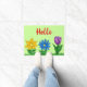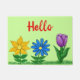 Hübsche Blumen im goldenen Gelb, im blauen gelben Gänseblümchen und in der lila Tulpe in der Blüte im Gartengras. Hallo wird in rotes Skript geschrieben. Reizend für die Frühlings- oder Sommermonate oder des Jahres, zum des Freiens jederzeit nach innen zu holen. Hübsche Türmatte für Innen- oder Gebrauch im Freien. Sehen Sie meinen Ordner der Küche/des Esszimmers für Mischungs- u. Matcheinzelteile, ursprüngliche grafische Grafik etc. durch TamiraZDesigns. www.zazzle.com/tamirazdesigns