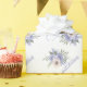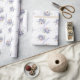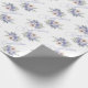 Hübsche Hochzeitsgeschenkpapier aus weißer Verpackung, mit einem Lavendel und pfirsichfarbenen Muster. Herzlichen Glückwunsch in lavenderfarbenen Text, läuft zwischen den Blume.
