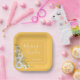Hübsches Hochzeitspapier Party Teller Design bietet Aquarellfarben-Molkereiecke auf dunkelgelbem Hintergrund mit weißen, anpassbaren Textblöcken in modernen Schriftart