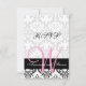 Rosa Monogramm auf schwarz-weiß einzigartiges Damast-Muster, anpassbare Wedding RSVP Card. Hübsche Damaske rosa Monogram Einladung Einladung Antwort Karte. Design von Elke Clarke© für Monogram Gallery. Passen Sie Ihren RSVP Text mit Ihrem Monogramm, Ihren Namen und Ihren Hochzeitstext an. Für weitere Editieroptionen verwenden Sie "Anpassen", um den Textabstand und die Farben zu ändern. Oder kontaktieren Sie luxuryweddinginvitations@gmail.com für Hilfe. lizenzierte Grafiken.