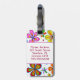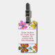 Große Blume entwerfen Gepäckanhänger. Originelles Kunstwerk Design von großen Blume in hellen Farben auf beiden Seiten. Der Vorlagentext ist dunkelrötlich pink auf weiß und ist vertikal für eine einfache Anzeige.