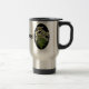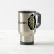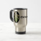 Hübscher Reisetug, mit original Grafik der weißen alpinen Blume Edelweiss, gegen ein schwarzes Oval auf beiden Seiten der Tasse. Schwarzer Text im alten Weltstil, in der Mitte liest Edelweiss, und kann personalisiert sein, zu lesen, was Sie gewollt haben.