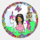 Hübsche Ethnische Prinzessin und Schloss Unicorn Runder Aufkleber