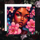 Coole Luftkunst, die eine hübsche afroamerikanische Frau mit rosa Blume im Haar darstellt. Hübsche hyperrealistische Digitalkunst.