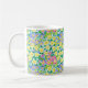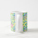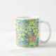Eine sehr hübsche Kaffee-Tasse, mit einem Muster der rosa, gelben und blauen Primeln, von einem handgemalten Wasserfarbeentwurf durch Judy Adamson.