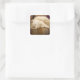 Hübsche, gelbe Tabi Katze auf einem Sofa. Quadratischer Aufkleber
