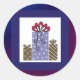 Ein niedlicher Aufkleber für Ihre Weihnachtsverpackungen. Drei hübsche Geschenke unterstreichen dieses Design mit einem cool blauen und lila Hintergrund.