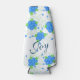 Blauer Blumen Designerhülse, ideal als persönliches Geschenk, oder für Gäste bei einem besonderen Ereignis. Text kann personalisiert sein oder Text kann entfernt werden.
