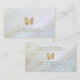 Hübsche und elegante Visitenkarten mit einem minimalistischen Imitat Gold-Folie Schmetterling Logo Design auf einem Imitat Mutter von Perlen Hintergrund. Ideal für Schmuckdesigner, Massagetherapeuten, Wellness-Center, kleine Unternehmen und vieles mehr.