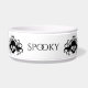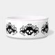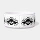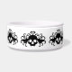 Eine Niedliche Gothic Cat oder Hundeschale mit einem Muster schwarzer geflügter Schädel, in denen sich die Herzen drehen. Füge den Namen deines Tieres hinzu.