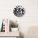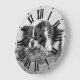 Dieser Hübsche Border Collie Dog Large Clock bietet ein fantastisches Schwarz-Weiß-Foto eines hübschen Ränder Collie Hundes, der auf einem Baumstamm liegt. Eine perfekte Ergänzung zum Zuhause eines jeden Hundeliebhabers. Das Bild ist exklusiv für Zazzle und kann nirgendwo anders gefunden werden!. © Dafydds Designs.