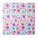 Eine hübsche Keramik mit einem Muster von Blume in lila, türkis, rosa und orange auf weißem Hintergrund, aus einer handbemalten PapierCollage von Judy Adamson. Sie können die Hintergrundfarbe ganz einfach ändern, wenn Sie möchten, indem Sie die Schaltfläche Bearbeiten verwenden. Fügen Sie einen Holzrahmen hinzu, der als Trivet verwendet werden kann!