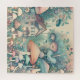 Eine Aquarellkunst, die ein kleines Dorf in der Hütte darstellt, in dem sich Bäume, Pilze und ein kleines Haus befinden.