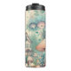 Eine Aquarellkunst, die ein kleines Dorf in der Hütte darstellt, in dem sich Bäume, Pilze und ein kleines Haus befinden.