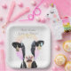 Eine hübsche und lebendige Geburtstagsfeier für Kinder, die für jedes Alter angepasst werden kann. Eine moderne Holstein Kuh auf einem rosa Aquarell. Gut für einen dritten, ersten oder zweiten Geburtstag.