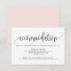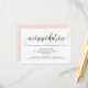Whimsikale und einfache Unterkunftskarte mit Kalligrafieschrift und klassischer Typografie mit einem schwarz rosa Hinterbild. Sie können die Rückseite der Karte noch weiter personalisieren, indem Sie den Hintergrund für den Hintergrund mit dem Schwarz in ein Foto oder ein anderes Bild ändern. Ideal für jede Hochzeit und jede Jahreszeit.