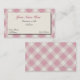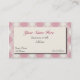 Die geschmackvoll und stilvoll eingerichtete Visitenkartenvorlage im Retro-Stil kariert. Ein durchsichtiger, cremefarbener Textbereich über der karierten Farbe Rosa und Creme ist schwarz und dunkelrosa. Personalisieren Sie den gesamten Text, um Ihre Bedürfnisse zu Anzug.