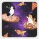 Hübsche Katzen reiten auf Platz Quadratischer Aufkleber