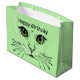 Diese Geschenktasche ist hellgrün mit einem hübschen Katzengesicht in Schwarz mit intensiv grünen Augen und langen Whiskers. Passen Sie den Happy Birthday Text mit den Vorlagen vorne und hinten an.