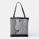 Stilvoll und anmutig, wird diese hübsche Tasche Ihrem Outfit eine Touch Persönlichkeit verleihen! Die schwarze Kontur einer sitzenden Katze ist aus einem wunderschönen Blumenmuster in Weiß und Grau gestrichen. Das Design wird auf der anderen Seite umgekehrt, sodass die Muster und Farben an den Seitennaht übereinstimmen. Das perfekte Geschenk für die stilvolle Katzenfrau in Ihrem Leben!