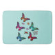 Eine Badematte mit eleganten, flatternden Schmetterlingen in vielen hellen Farben, wie grün, orange, blau, rot und rosa. Blumenmotive fügen eine skurrile Touch hinzu.