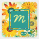 Gelbe und türkisfarbene, skurrile Blume. Fügen Sie im personalisierten Bereich Initialen hinzu.