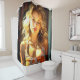 Dieser Duschvorhang hat eine hübsche Dame darauf abgebildet.