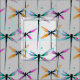 Hübsche originale Aquarellbild niedlicher Libellen in verschiedenen Farben vor rustikalem Hintergrund.