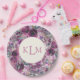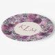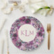 Hübsche botanische lila und lila Aquarellpapier Party Platte personalisiert mit Ihren Monogramm/3 Initialen.
