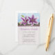 Lila Lilienkarten (Umzäunungskarten) mit rustikalem Chic-Design, exklusiv von Artistical Invited entworfen, mit zwei lila Lilien am oberen Ende, auf brauner Holzoberfläche, auf blauem Hintergrund. Ihre personalisierten Empfang-Details sind in Braun und lila auf einem helleren Holzmuster-Hintergrund. Diese lila Lilienkarten eignen sich perfekt für Ihre Blumenhochzeiten. Es stehen passende Einladungen, Adresslisten, Dankkarten und andere Artikel zur Verfügung. Sie werden nach den Hübschen Lila Lily Wedding Einladungen hergestellt.