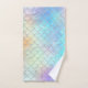 Hübsches Mermaid Scales Badetuch Set Hübsche Meerjungfrau Badetuch Set in rosa, blau und lila Meerjungfrau Muster mit Imitaten Glitzer.