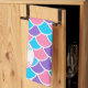 Machen Sie mit dieser hübschen Meerjungfrau-Illustration einen Spaß in Ihrer Küche! Dieses Design enthält einen Meerjungfrau-Schwanz, der durch die Worte "Meerjungfrau am Herzen" gerahmt wird. Der Hintergrund weist ein Muster von Meerjungfrauen auf. Es passt gut zu Ihrem rosa, lila oder blauen Küchendekor.