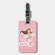 Ein Gepäckanhänger mit einer hübschen Meerjungfrau mit Seestern-Accessoire und einer blauen Muschel. Ein rosa Wellenmuster für den Hintergrund. Personalisieren Sie einfach den Namen des Kindes im dafür vorgesehenen Platz.