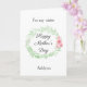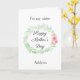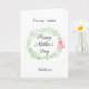 Eine grüne Aquarelllaurel und rosa Blume hübsche Muttertagsschwesterkarte, die Sie leicht mit ihrem Namen personalisieren können. Die innere Nachricht dieser hübschen Schwestermüttertagskarte liest eine herzliche Nachricht, die Sie auch personalisieren können, wenn Sie gewollt haben. Der Rücken hat den gleichen grünen Wasserfarbenlaurel mit rosa Blume, wo man die Namen des Kindes(der Kinder) oder was auch immer man möchte angeben kann. Eine süße Muttertagssache, die personalisiert und sicher geschätzt ist.