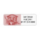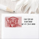 Einfache und elegante Weihnachtsgeschmücke mit einem blassroten, gesprenkelten Hintergrund mit einer dunkelroten Briefmarke von Maria, Joseph und dem Baby Jesus in einem kleinen Manöver mit dem hellen Stern darüber.