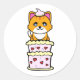 Hübsche Orangenkatze, die aus einem Kuchen springt Runder Aufkleber