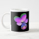 Diese phantastische Tasse zeigt ein Foto einer wilden Pansy-Blume. Das Foto wurde künstlich gefärbt, was zu einer Panik mit leuchtenden rosa lila Blütenblättern mit grünen Spitzen-Blättern und einem tiefblauen Zentrum führt. Der Hintergrund ist schwarz, um die Blume zu heben.