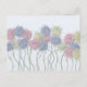Diese hübsche Postkarte bietet hübsche Blume in Pastellfarben Blau, Gelb und Rosa mit hellgrünen Stielen. Hintergrund des hellblauen Himmels. Basierend auf einem Originalwerk von © One Künstlerisch Momma.